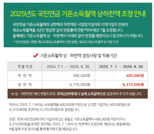 - 국민연금 보험료 인상 시점: 2025년 7월 1일